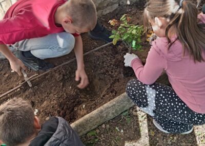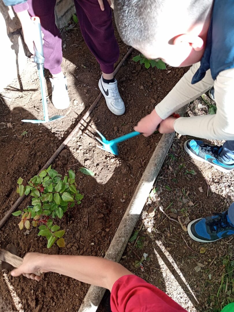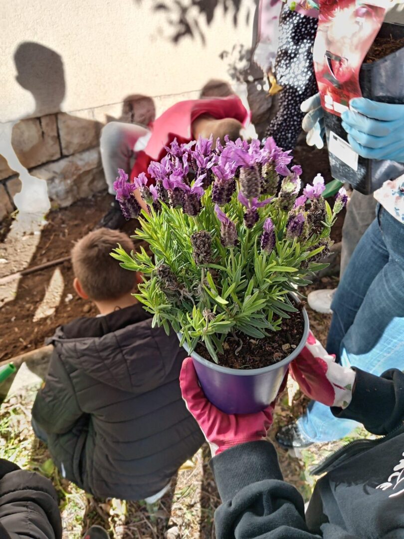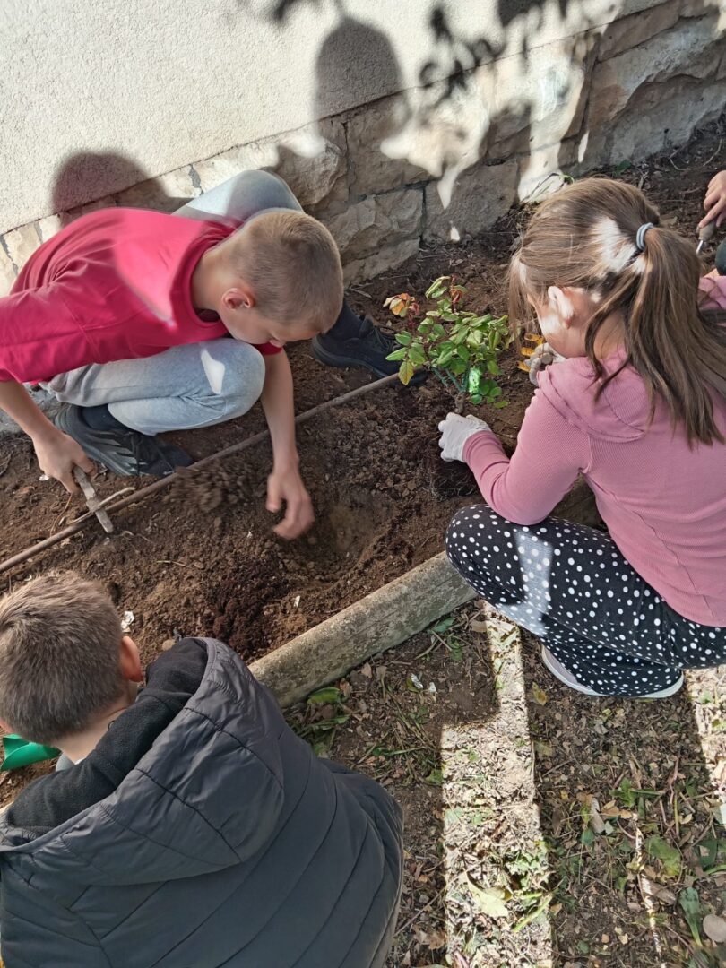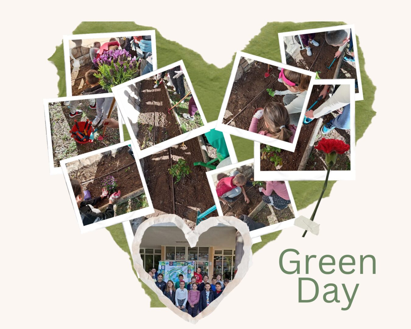 Ovaj tjedan smo u sklopu našega projekta u školi obilježili Green Day te ga pretvorili u pravo malo ekološko slavlje. Učenici su rukama punim entuzijazma i smijeha, sadili raznovrsne biljke i cvijeće, pretvarajući školsko dvorište u šarenu oazu života. Svaka posađena biljka bila je mali korak prema većoj brizi za prirodu i naš planet. Zajedničkim radom u vrtu učenici su razvijali timski duh, međusobnu suradnju i osjećaj odgovornosti prema okolišu. Uz malo zemlje pod noktima i puno dobre volje, pokazali su da briga za prirodu može biti i poučna i zabavna, a škola mjesto gdje raste ne samo znanje, nego i cvijeće.