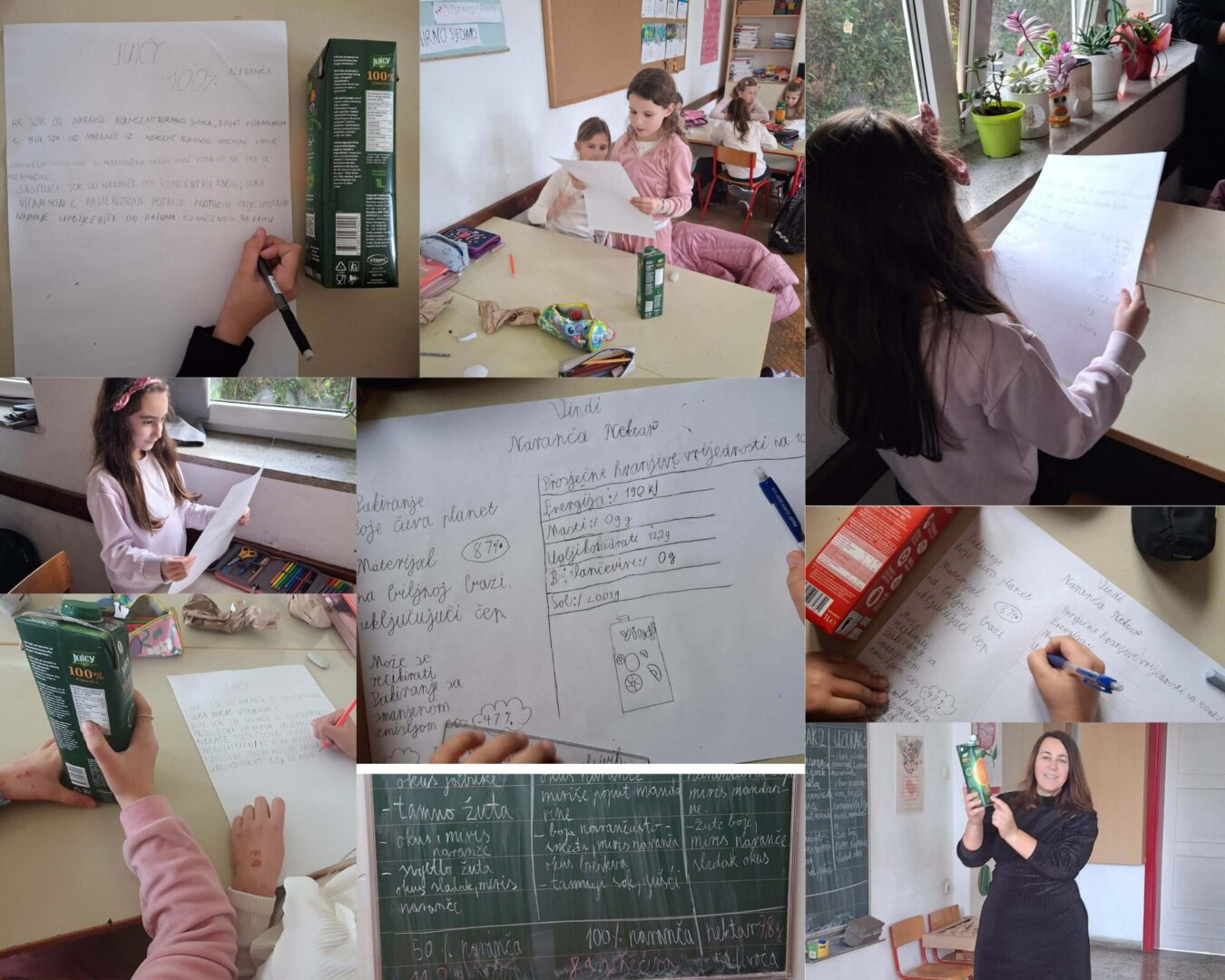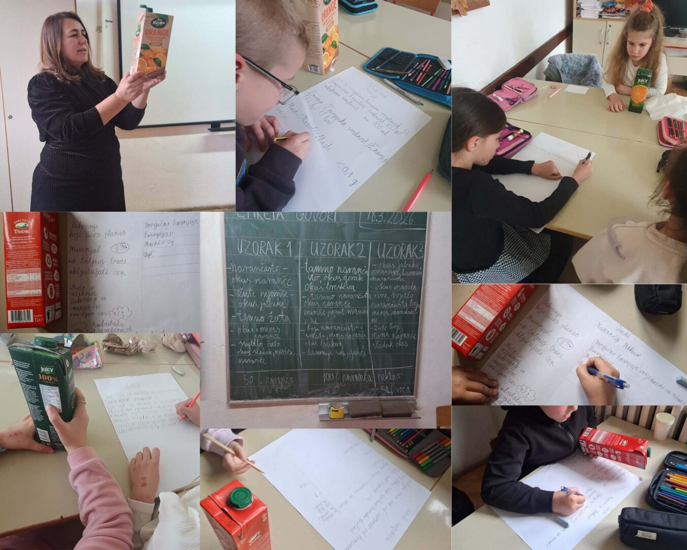 Nakon kušanja u malim skupinama analizirali su sastojke sokova koje su kušali, a zatim su predstavnici skupina radove izložili pred razredom. Na svojim zapisima posebno su istakli količinu zastupljenog šećera u sokovima te su na kraju sata donijeli zaključak koji sok među kušanima bi trebao biti najzdraviji.