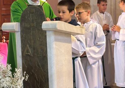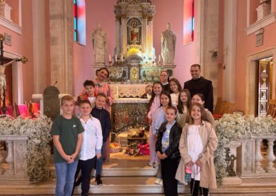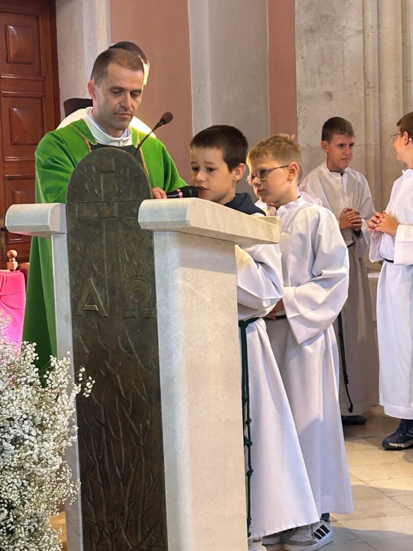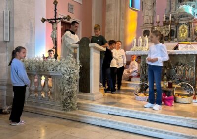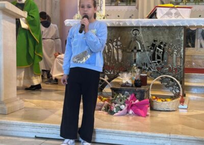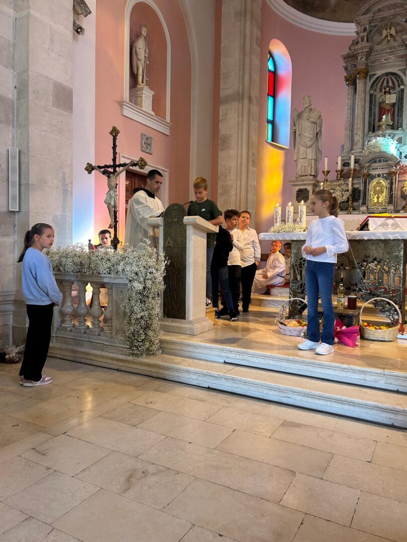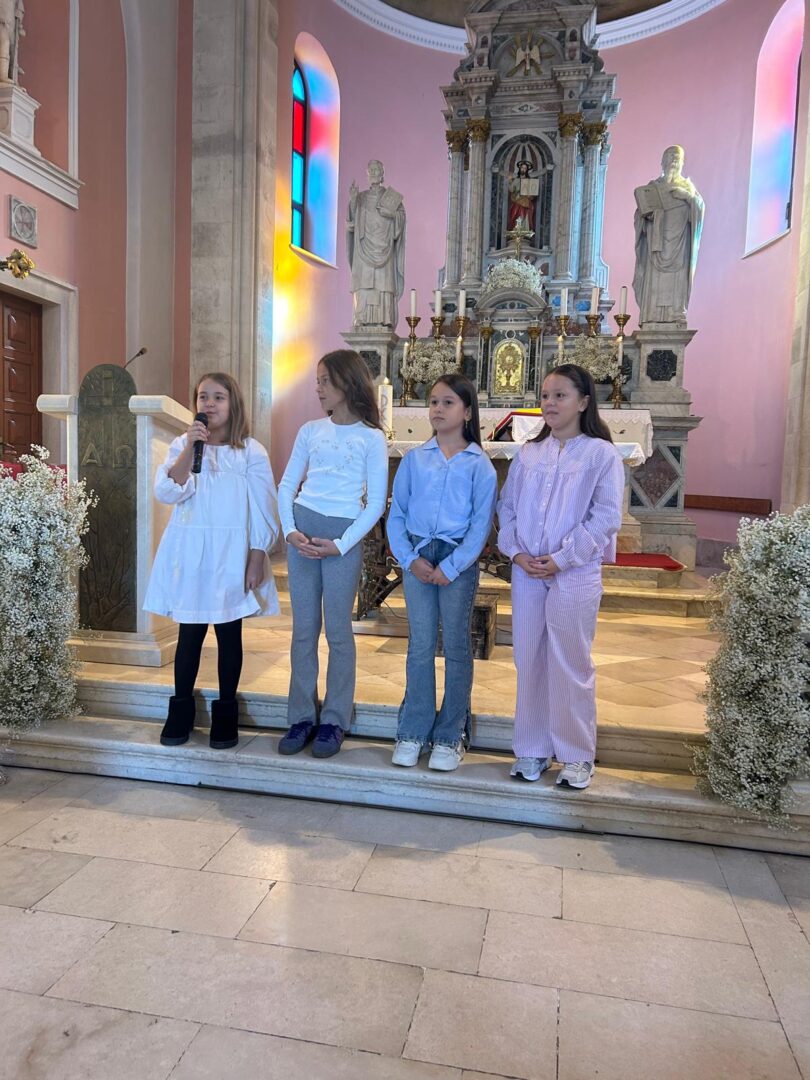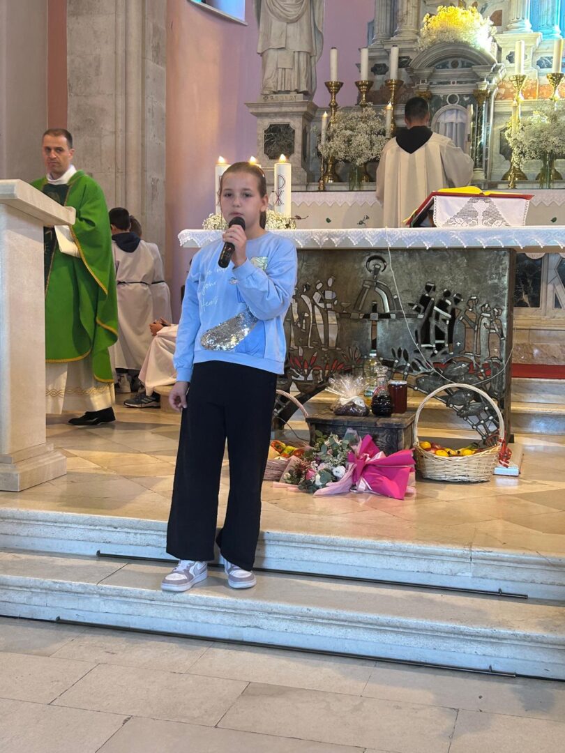Jučer, 12. listopada 2025. godine, tijekom svete mise u 9.30 sati obilježen je Dan kruha i zahvalnosti za plodove zemlje. Misno slavlje je predvodio župnik fra Denis Šimunović, a časna sestra Mila Deak je ravnala Dječjim crkvenim zborom. Učenici 3. i 4. razreda Dramsko – recitatorske skupine naše škole su uveličali svetu misu prigodnim recitacijama i prinosima plodova zemlje i rada ljudskih ruku. Fra Denis Šimunović je posebno istaknuo važnost dijeljenja s potrebnima, ali i zahvaljivanju na onome što imamo.