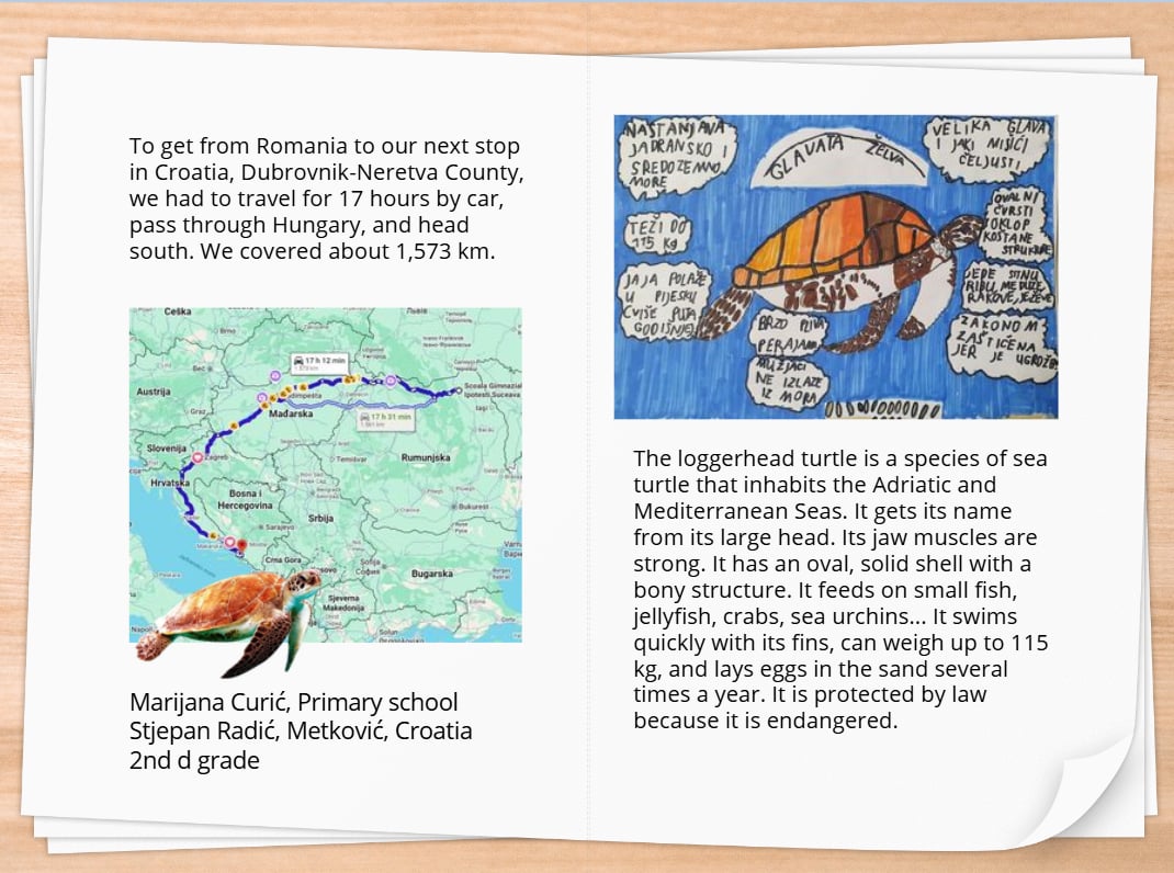 Učenici 2.d razreda s učiteljicom su izabrali kornjaču glavatu želvu i sredozemnu medvjedicu. Istražili su o njima putem interneta, napravili su umne mape i crteže.